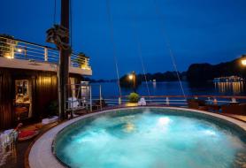 - Bể sục jacuzzi ngoài trời: Khu vực sundeck nằm ở tầng 3 được thiết kế có một bể sục jacuzzi cho du khách nằm thư giãn và ngắm cảnh đẹp xung quanh vịnh.