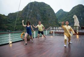 Hoạt Động Khám Phá Hấp Dẫn: Chèo thuyền kayak khám phá các hang động nhỏ và làng chài, tham quan các hang động nổi tiếng (như Hang Sửng Sốt, Hang Luồn), bơi lội ở vùng nước trong xanh của Vịnh Lan Hạ, tham gia lớp học nấu ăn, trải nghiệm câu mực đêm, và tập Thái Cực Quyền (Tai Chi) buổi sáng trên boong tàu.