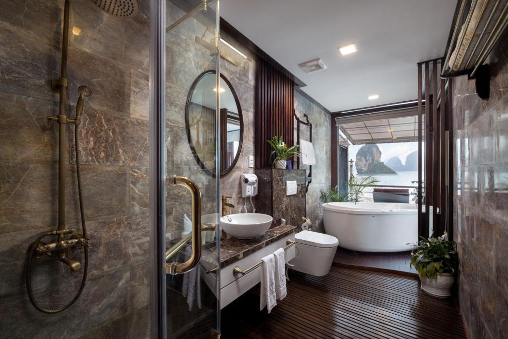 100% phòng nghỉ có ban công riêng & bồn tắm: Tận hưởng không gian riêng tư tuyệt đối với góc nhìn toàn cảnh vịnh từ ban công của riêng bạn và thư giãn trong phòng tắm sang trọng với bồn tắm đẳng cấp.