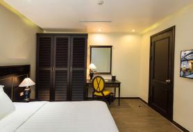Diện tích 50m2, có phòng khách riêng biệt view thành phố, phòng ngủ gồm 01 giường đôi cỡ lớn, vòi tắm đứng. Phòng được trang bị đầy đủ các tiện nghi.