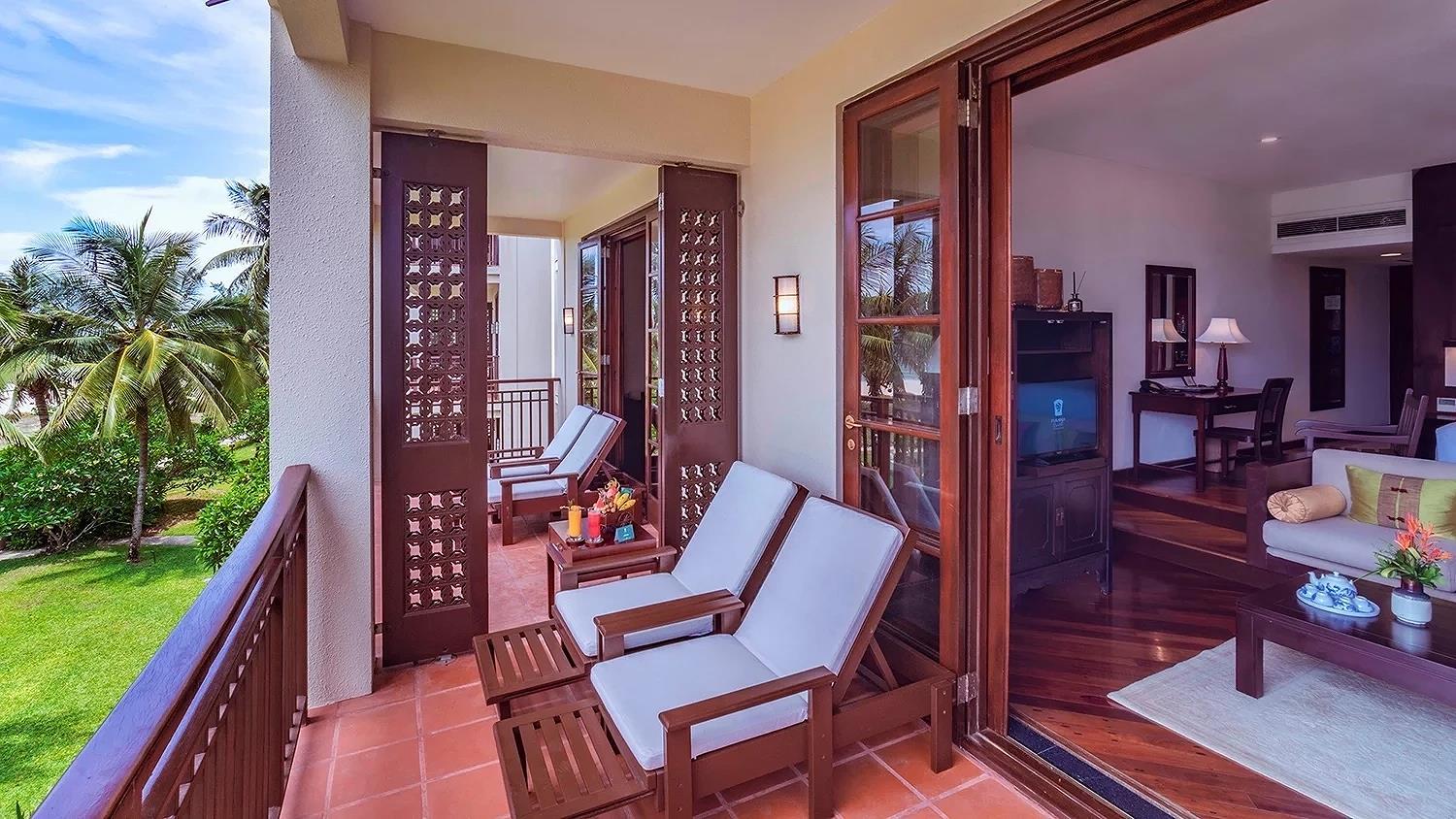 Là hạng phòng cao nhất của resort, với diện tích 109 m2, có phòng khách riêng, phòng ngủ dành cho 2 khách, view có ban công hướng biển, có thể kê thêm tối đa 1 giường phụ.
