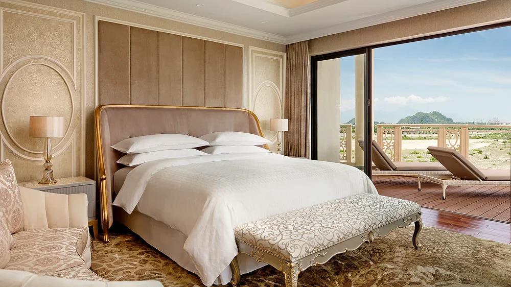 Resort bao gồm 2 khu khách sạn cao 6 tầng. Khu I gồm 130 phòng nghỉ và phòng suite, với căn phòng Đại sứ sang trọng; khu II có 128 phòng nghỉ và phòng suite, với phòng Tổng thống đẳng cấp có lối đi VIP, thang máy riêng và bãi đáp/cất cánh máy bay trực thăng. Các phòng nghỉ và suite bao gồm 1, 2 hoặc 3 phòng, đáp ứng mọi nhu cầu của du khách. Tất cả phòng nghỉ đều được trang bị giường Sheraton Signature Sleep Experience với hướng nhìn ra khung cảnh biển hoặc hồ bơi vô cực dài nhất Đà Nẵng. Mọi căn phòng đều có ban công riêng, lối trang trí cổ điển quý phái pha lẫn đường nét đương đại, tạo ra một không gian trang trọng, ấm cúng.
